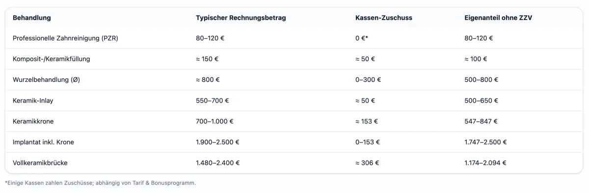 Ohne ZZV zahlen Sie den vollen Eigenanteil.